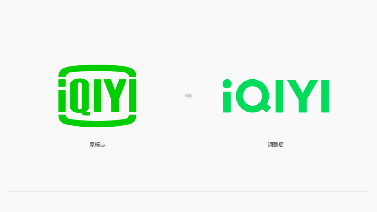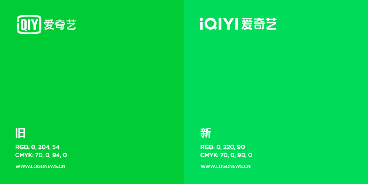 從上面的新舊對比中可以直觀地發(fā)現(xiàn),愛奇藝全新啟用的LOGO中外邊框不見了!而且品牌色也發(fā)生了明顯的變化。