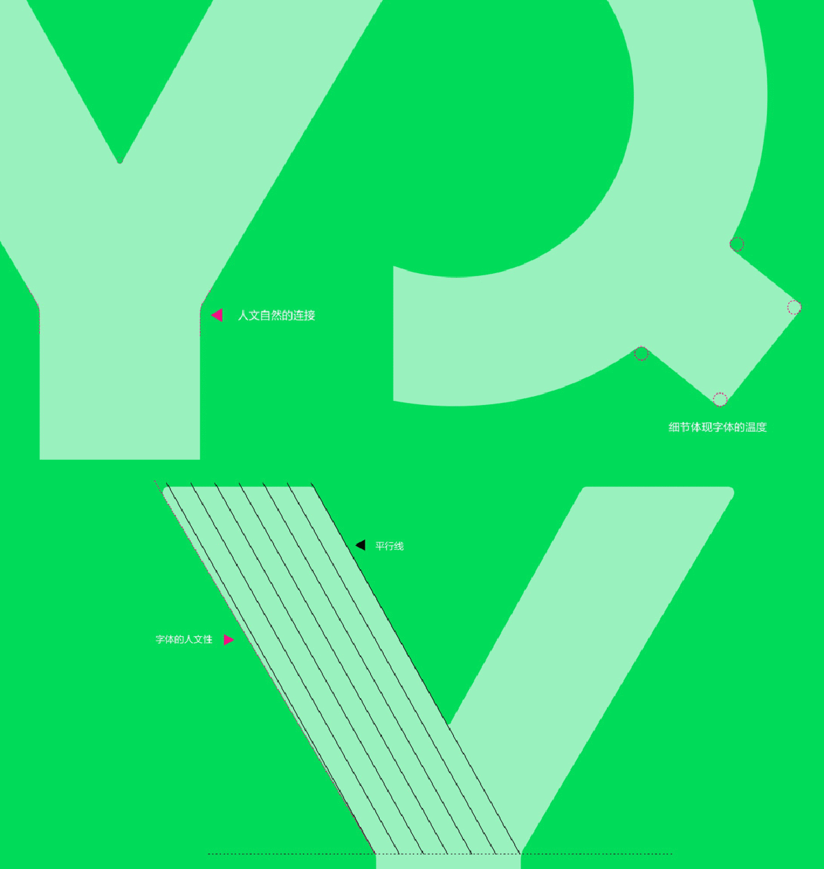 重新設(shè)計的中文字體讓人眼前一亮。就像上面的英文字一樣,中文字體的設(shè)計也遵循了圓角切割的設(shè)計手法,字體的關(guān)鍵部位以圓為基礎(chǔ)構(gòu)建造型,讓字體呈現(xiàn)出更多細節(jié)和品質(zhì)。