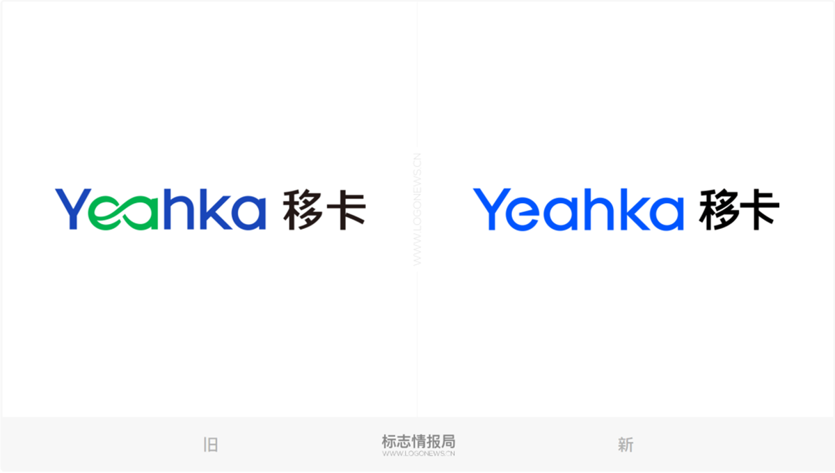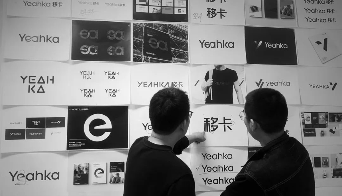 先讓我們來看看移卡的舊LOGO。字標「Yeahka」中的「ea」連接后變成了一個獨特的視覺符號,這個符號很像一個無限「∞」的符號,傳遞出無限的科技創(chuàng)新發(fā)展空間和業(yè)務(wù)邊界擴張潛力。