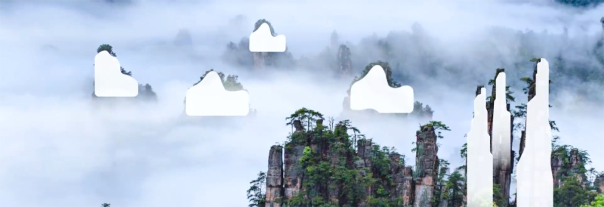 作品1:以《阿凡達(dá)》懸浮山和張家界國家森林公園乾坤柱為原型,并以抽象的形式融合云與山元素,并加入了瀑布、御筆峰等元素。