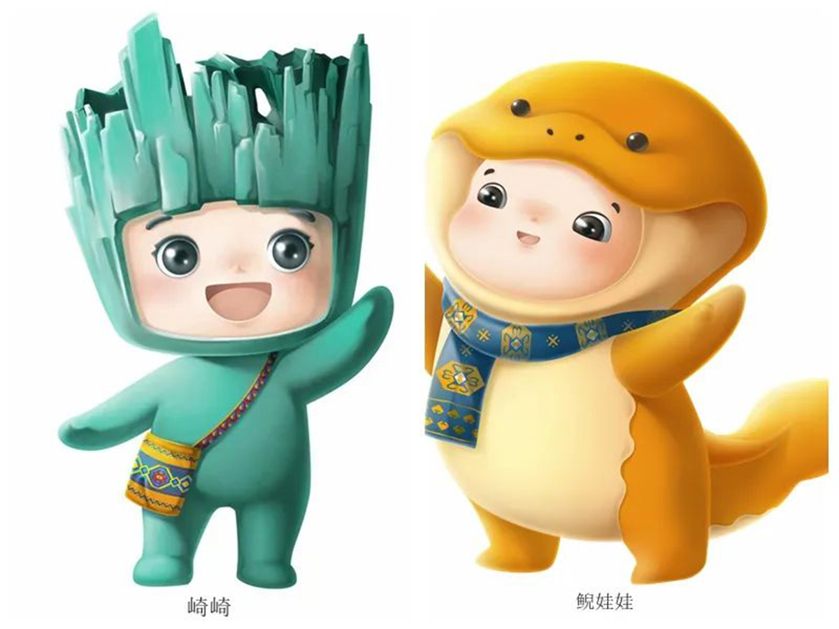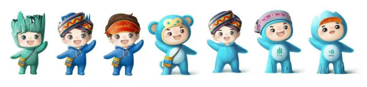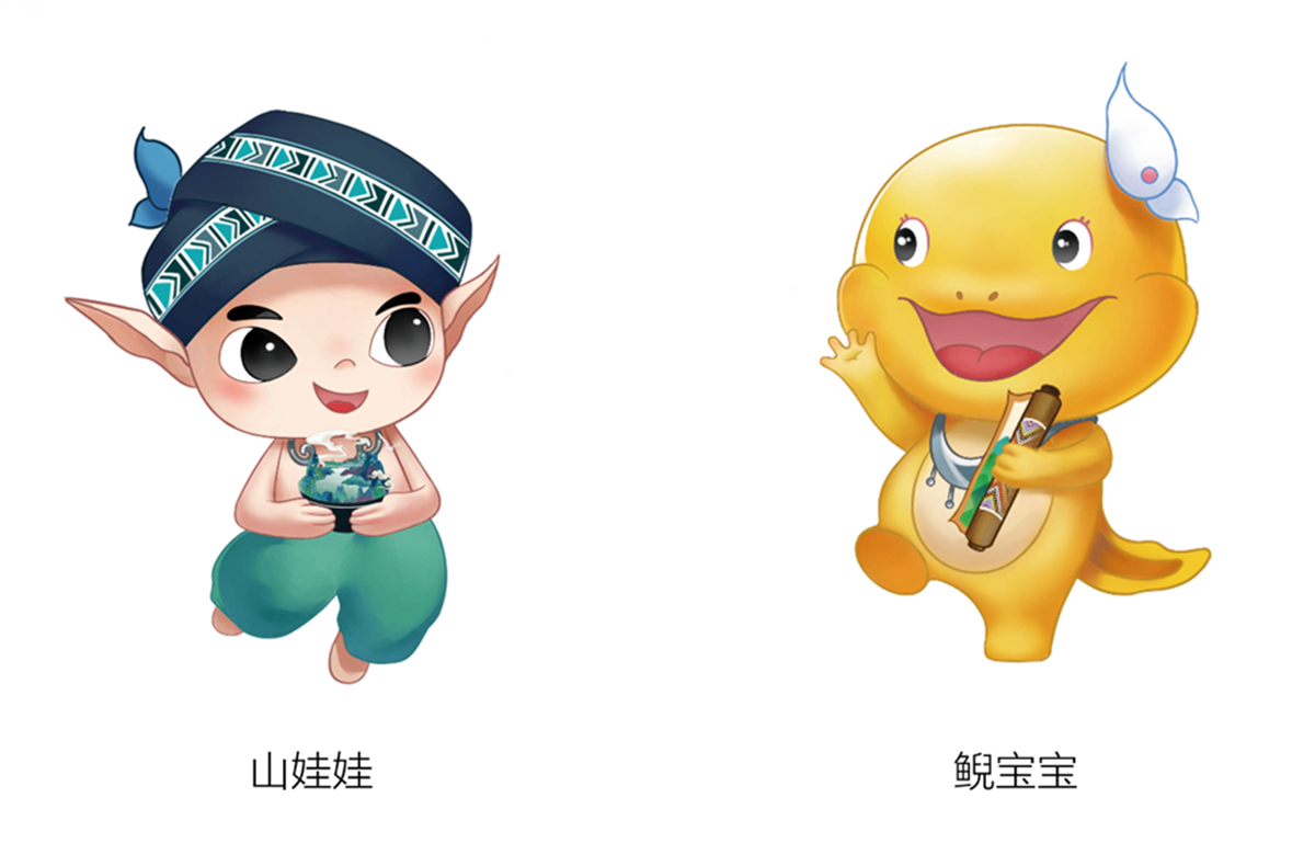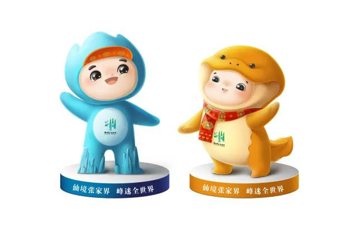 兩個吉祥物以可愛萌物的形式設(shè)計(jì),融合了張家界具標(biāo)志性的山峰、大鯢等元素,作為旅游大使來宣傳,形象還是非常親切的。