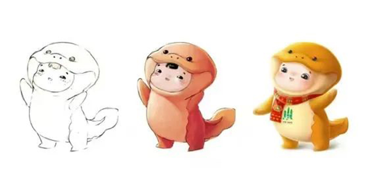 鯢寶寶則是以國家二級水生野生保護(hù)動物-大鯢為靈感設(shè)計(jì),以明亮的黃色為主設(shè)計(jì)。整個身體呈圓滾滾的造型,臉部是一個萌萌的小孩形象,像是套上大鯢造型的頭套,而圍巾上一樣加入了西蘭卡普紋飾圖案。