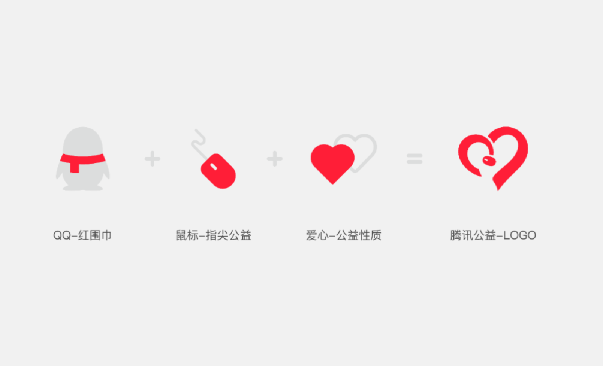 騰訊公益logo核心圖形取自騰訊“QQ”中企鵝的紅圍巾元素,迎風(fēng)狀態(tài)構(gòu)成愛心圖案,線條弧度兼具靈動(dòng)與質(zhì)感,中間的鼠標(biāo)圖案,代表著騰訊公益誕生伊始,作為首批互聯(lián)網(wǎng)募捐信息平臺(tái)而特有的「指尖公益」特色。