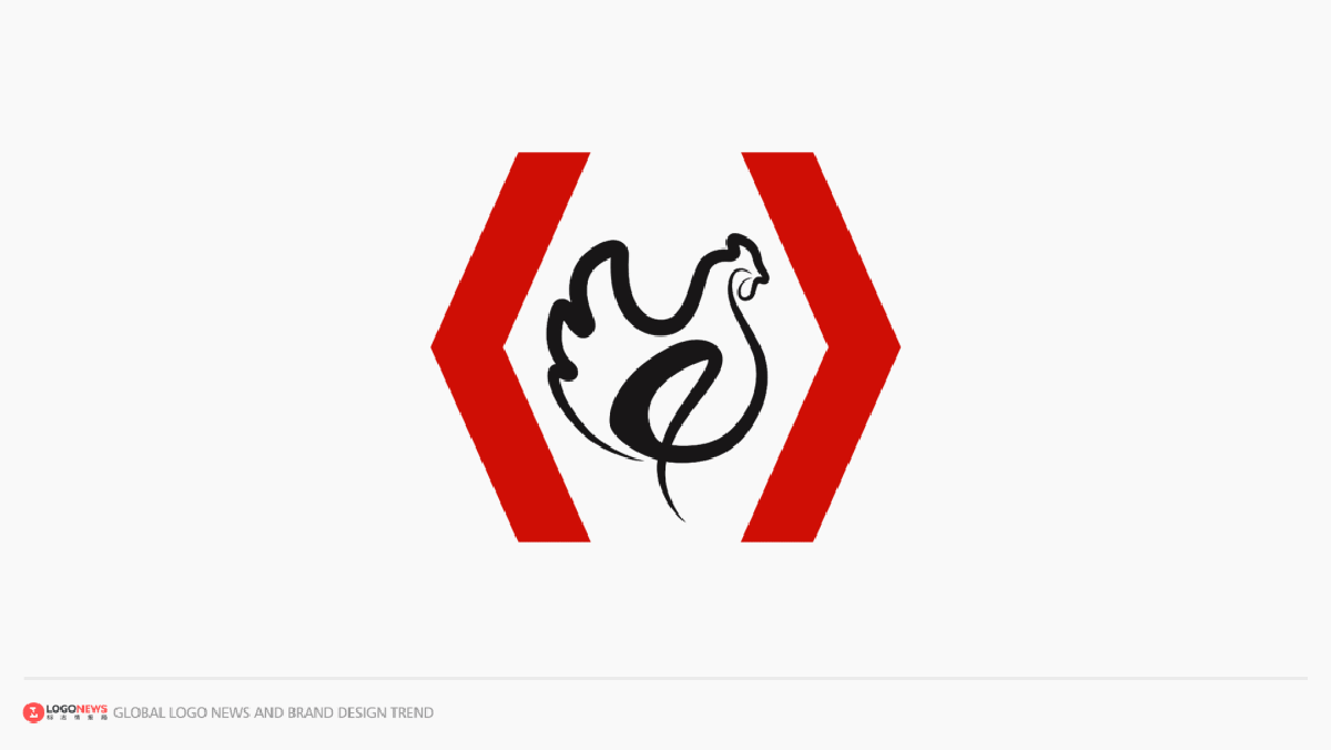 從申請的圖形樣式來看,其設(shè)計依然以黑白紅三色為主,其核心圖案變成了一只黑色的雞,而不是大家所熟知的微笑的肯德基上校的肖像,雞的兩側(cè)標(biāo)有類似「<>」的紅色符號。